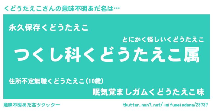 | 胡散臭い通販商品みたいなあだ名 | 『前代未聞の健康食品…その名も「くどうたえこ」』 |