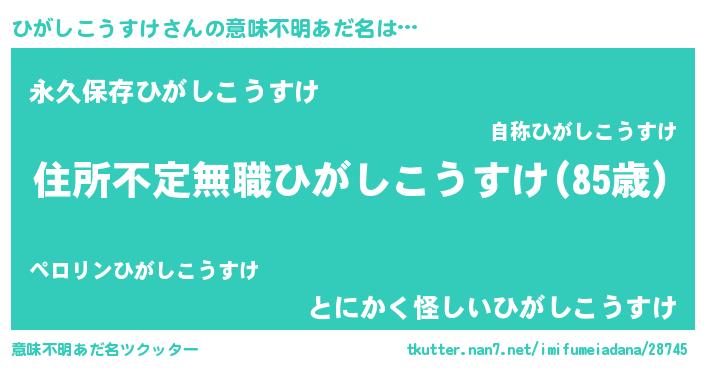 | 料理風あだ名 | 『ひがしこうすけのカルパッチョ風』 |