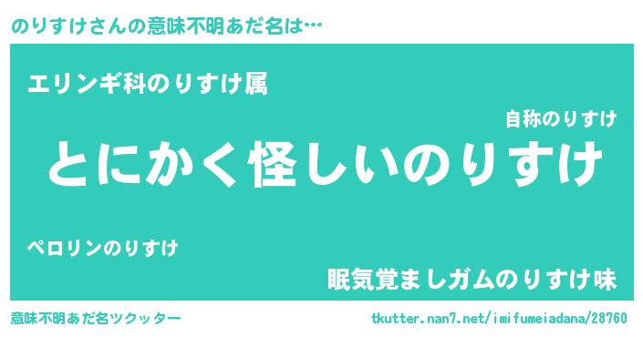 | 男性向けラノベタイトル風あだ名 | 『ダンジョンにのりすけを求めるのは間違っているだろうか』 |