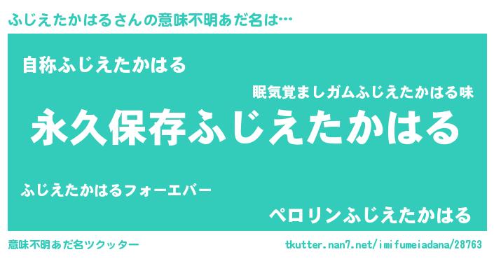 | 女子向けラノベタイトル風あだ名 | 『異世界で失敗しない100のふじえたかはる』 |