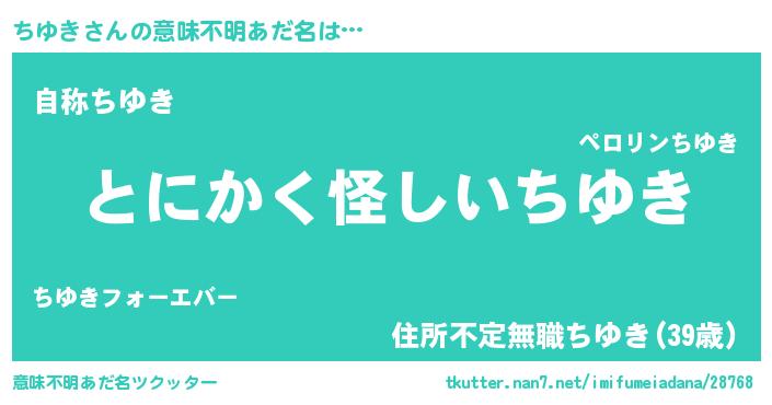 | 女子向けラノベタイトル風あだ名 | 『ちゆきの卵を拾いまして』 |