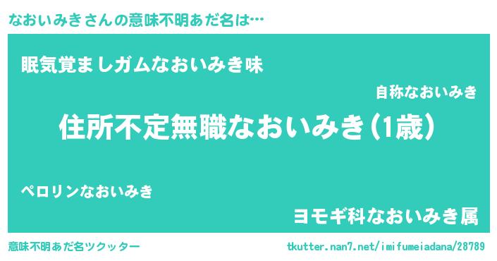| 男性向けラノベタイトル風あだ名 | 『この素晴らしい世界になおいみきを!』 |