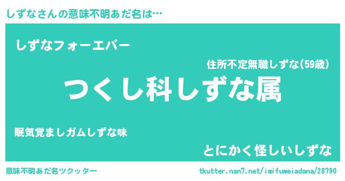 | ヒーロー風カッコイイあだ名 | 『ウルトラしずなマン』『暗黒騎士シズ』 |