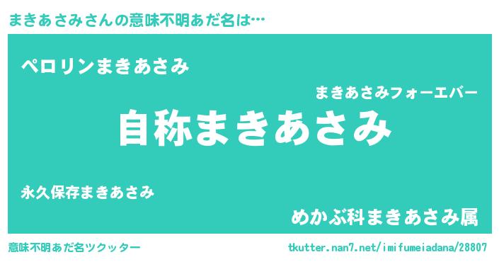| 男性向けラノベタイトル風あだ名 | 『Re:まきあさみから始める異世界生活』 |