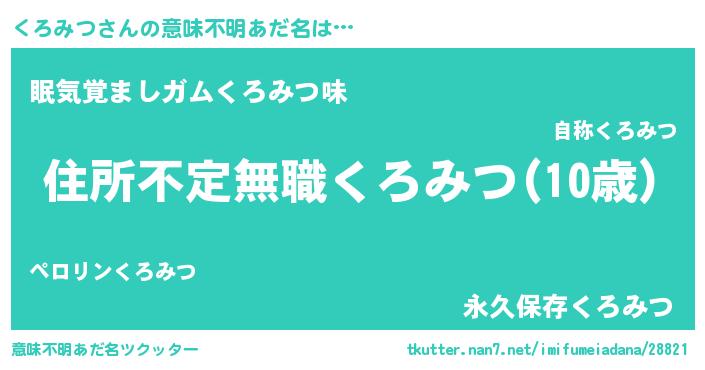 | 男性向けラノベタイトル風あだ名 | 『くろみつに滅ぼされるだけの簡単なお仕事です』 |
