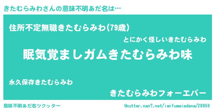 | 男性向けラノベタイトル風あだ名 | 『ノーゲーム・ノーキタムラミワ』 |