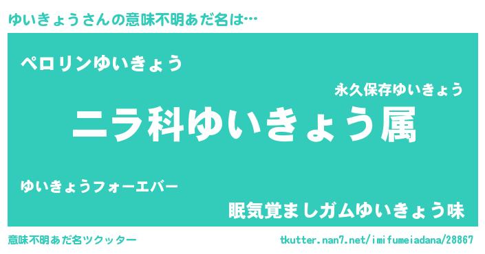 | 男性向けラノベタイトル風あだ名 | 『ゆいきょう~年齢イコール彼女いない歴の魔法使い~』 |