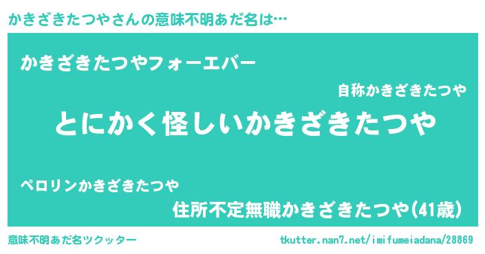 | 女子向けラノベタイトル風あだ名 | 『かきざきたつやは平凡を望む』 |