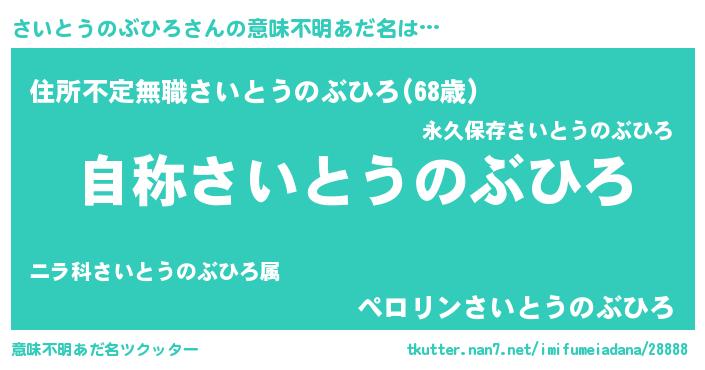 | 肩書あだ名 | 『さいとうのぶひろ閣下』 |