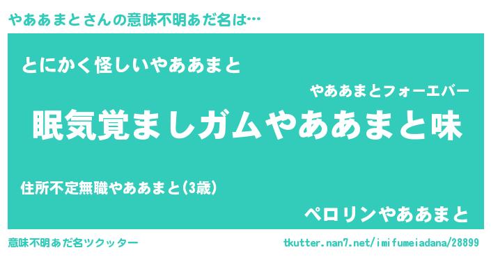 | 男性向けラノベタイトル風あだ名 | 『おまえをオタクにしてやるから、俺をやああまとにしてくれ! 』 |