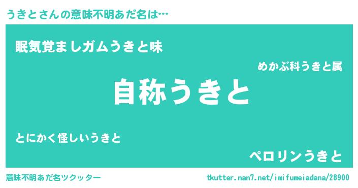 | 男性向けラノベタイトル風あだ名 | 『Re:うきとから始める異世界生活』 |