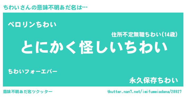 | 胡散臭い通販商品みたいなあだ名 | 『信頼と実績のサプリメント…その名も「ちわい」』 |