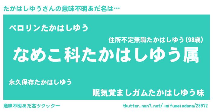 | 男性向けラノベタイトル風あだ名 | 『転生したらたかはしゆうだった件』 |
