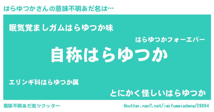| 女子向けラノベタイトル風あだ名 | 『はらゆつかなんてお断りですっ。』 |