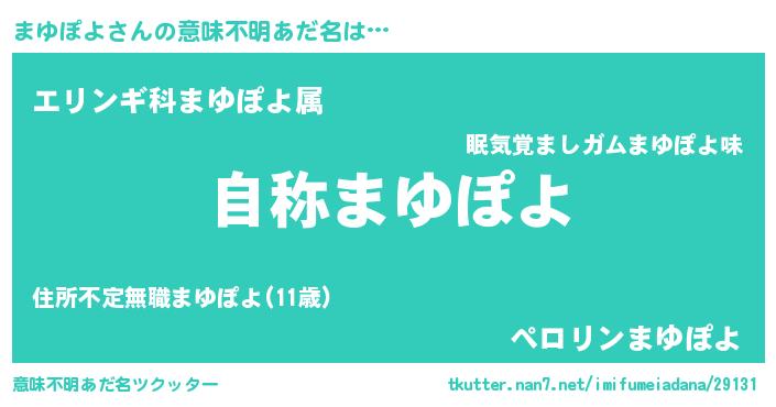 | 男性向けラノベタイトル風あだ名 | 『Re:まゆぽよから始める異世界生活』 |