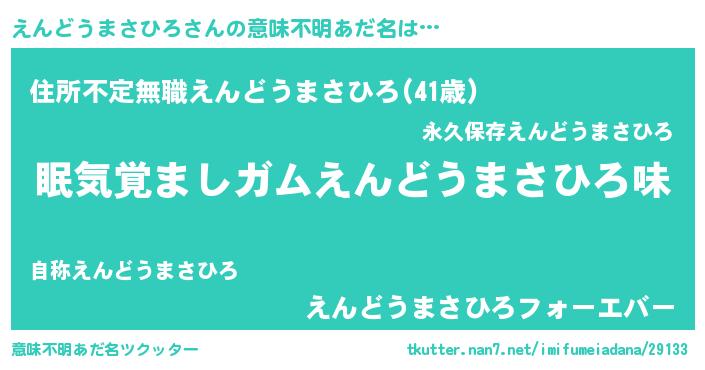 | 男性向けラノベタイトル風あだ名 | 『ノーゲーム・ノーエンドウマサヒロ』 |