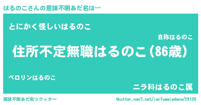| 料理風あだ名 | 『はるのこのカルパッチョ風』 |