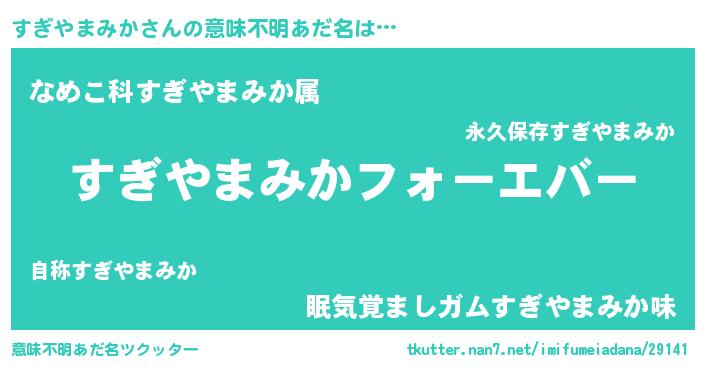 | 男性向けラノベタイトル風あだ名 | 『やはりすぎやまみかの青春ラブコメはまちがっている 』 |
