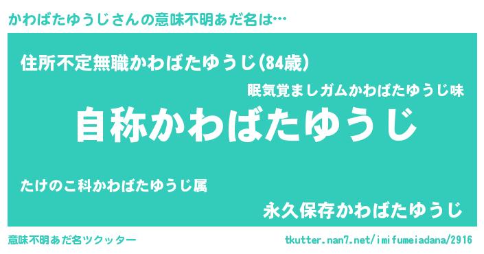 | ヘコむあだ名 | 『かわばたゆうじ(爆)』『かわもー』 |