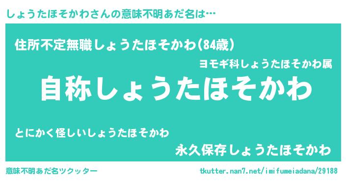 | ヘコむあだ名 | 『しょうたほそかわ(笑)』『しょぷりん』 |