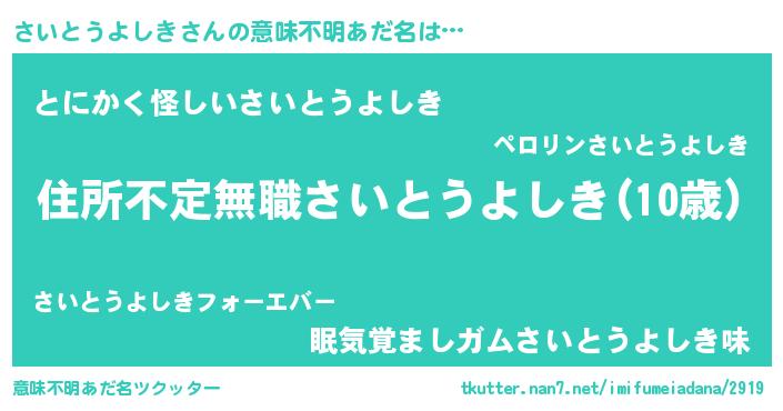 | 料理風あだ名 | 『さいとうよしきのカルパッチョ風』 |