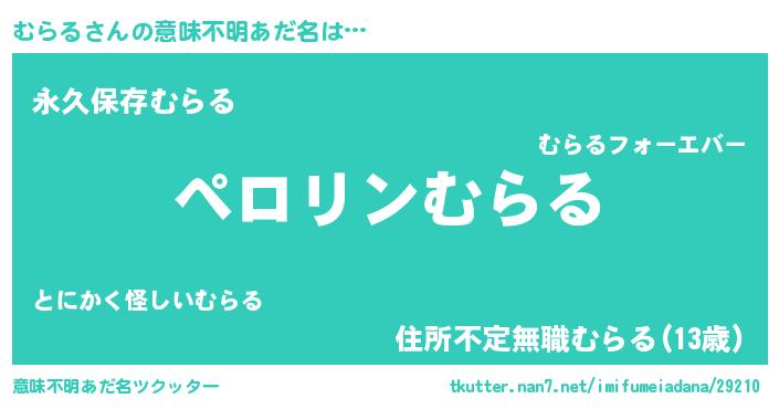 | 男性向けラノベタイトル風あだ名 | 『むらるに滅ぼされるだけの簡単なお仕事です』 |