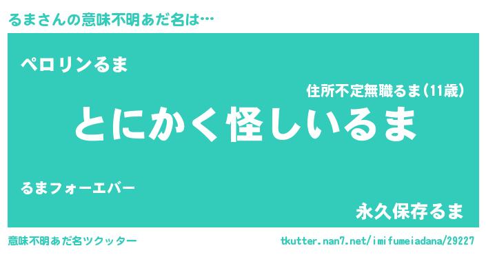 | 男性向けラノベタイトル風あだ名 | 『るまの嫁は女の子じゃないと思った?』 |