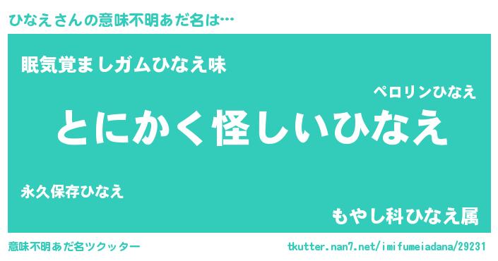 | ポケモン風あだ名 | 『ヒヒナエ』『ヒックウザ』 |