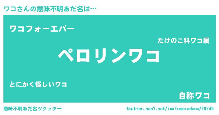 | 2回繰り返すあだ名 | 『ワコワコ』『とぽとぽ』『ワワココ』 |