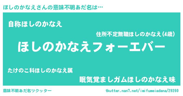 | ファンタジー風あだ名 | 『エターナルホシノカナエー』 |