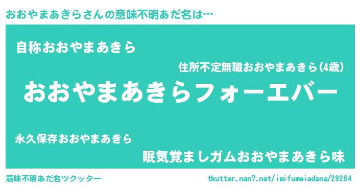 | ファンタジー風あだ名 | 『エターナルオオヤマアキラー』 |