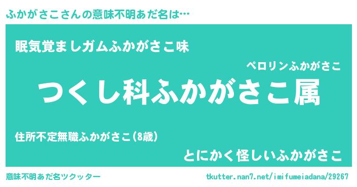| ヘコむあだ名 | 『ふかっ子』『ふかにゅー』『つくし』 |