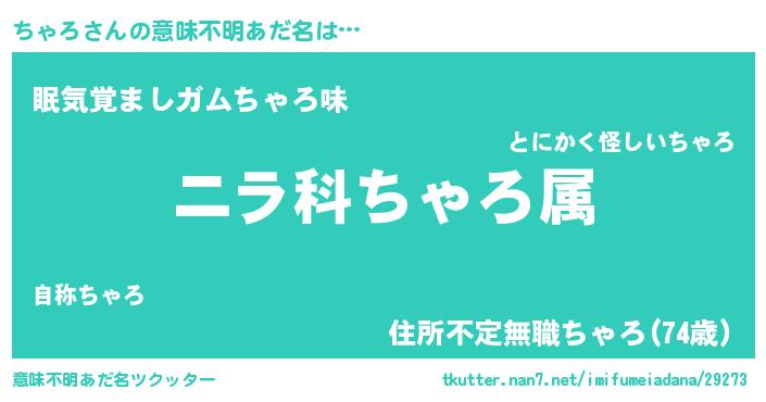 | 肩書あだ名 | 『ちゃろ上級大将』『ちゃろ助教授』 |
