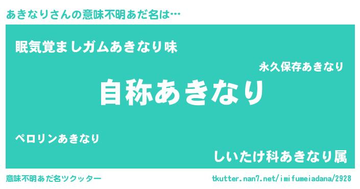 | ヘコむあだ名 | 『あきなり(遠い目)』『あきっふぃ~』 |