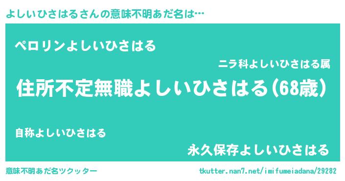 | ヘコむあだ名 | 『よしもー』『よしいひさはる(苦笑)』 |