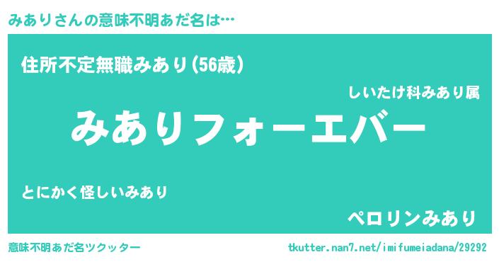 | ヘコむあだ名 | 『つくし』『みあにゅー』『みあっぺ』 |