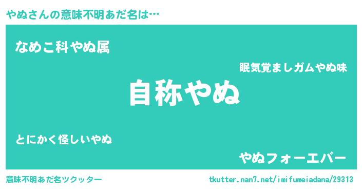 | 女子向けラノベタイトル風あだ名 | 『闇のやぬ』『やぬの玉の輿計画!』 |