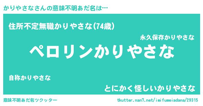 | 胡散臭い通販商品みたいなあだ名 | 『モテモテ間違いなし霊験あらたかなお札…その名も「かりやさな」』 |