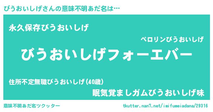 | 欧米人風あだ名 | 『びうおいしげクリステル』 |