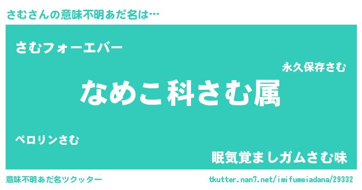 | ヘコむあだ名 | 『豆乳』『さむ(笑)』『さむっふぃ~』 |