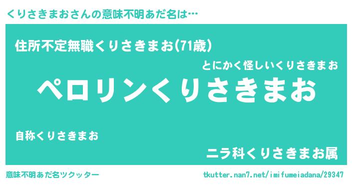| 胡散臭い通販商品みたいなあだ名 | 『億万長者になれるブレスレット…その名も「くりさきまお」』 |