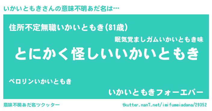 | 胡散臭い通販商品みたいなあだ名 | 『信頼と実績のサプリメント…その名も「いかいともき」』 |