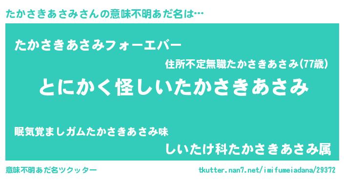 | 欧米人風あだ名 | 『ウサインたかさきあさみ』 |