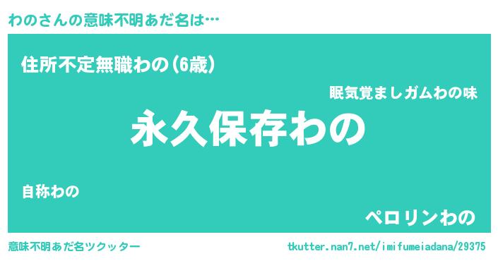 | 男性向けラノベタイトル風あだ名 | 『わのという概念が存在しない退屈な世界 』 |