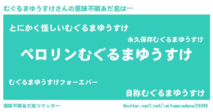 | 男性向けラノベタイトル風あだ名 | 『むぐるまゆうすけの憂鬱』 |