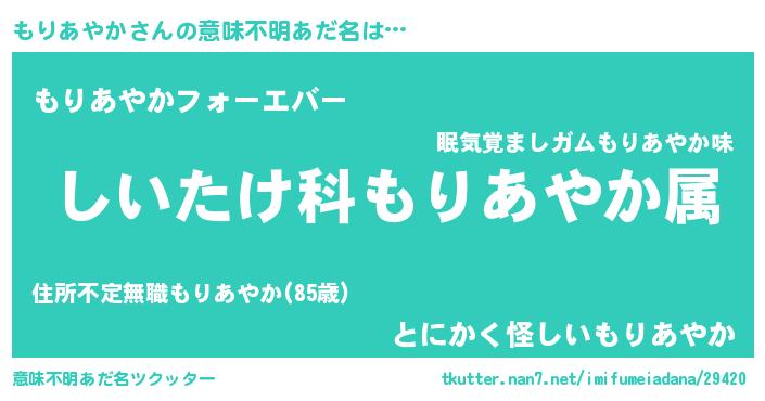 | 欧米人風あだ名 | 『もりあやか・ステッグマイヤー』 |