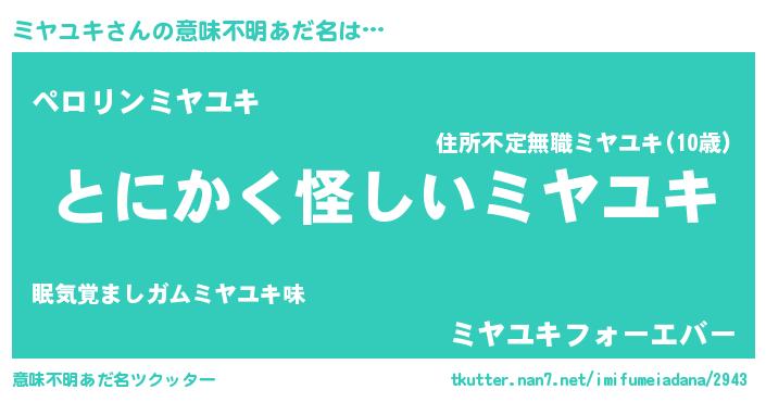 | ポケモン風あだ名 | 『ヒミヤユキ』『ミヤチュウ』 |