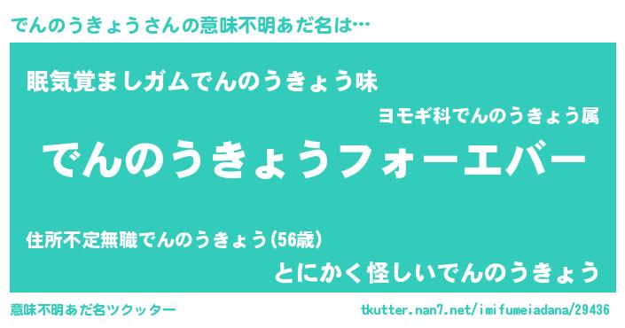 | ポケモン風あだ名 | 『デンノダネ』『デックウザ』 |