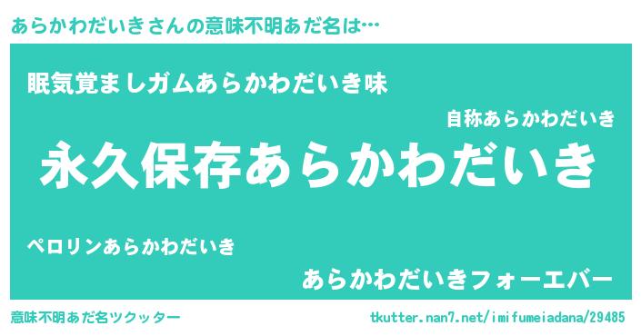 | ヘコむあだ名 | 『あらかわだいき(小並感)』『レバニラ』 |