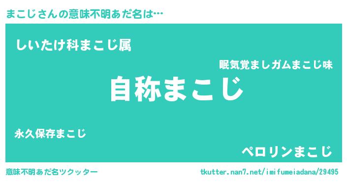 | 男性向けラノベタイトル風あだ名 | 『Re:まこじから始める異世界生活』 |